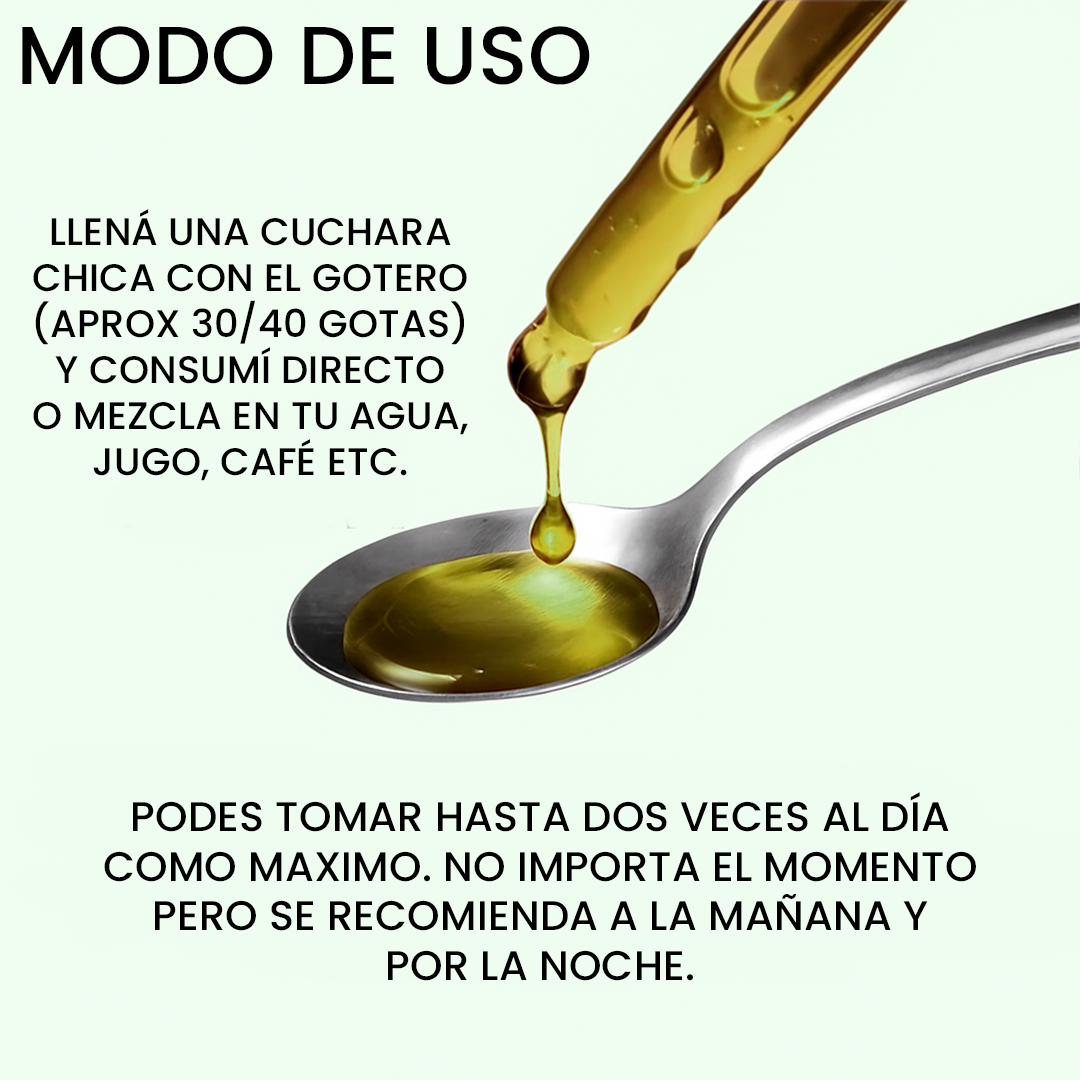 Si necesitás más efecto: pasar a 15–20 gotas dos veces al día (mañana y noche).